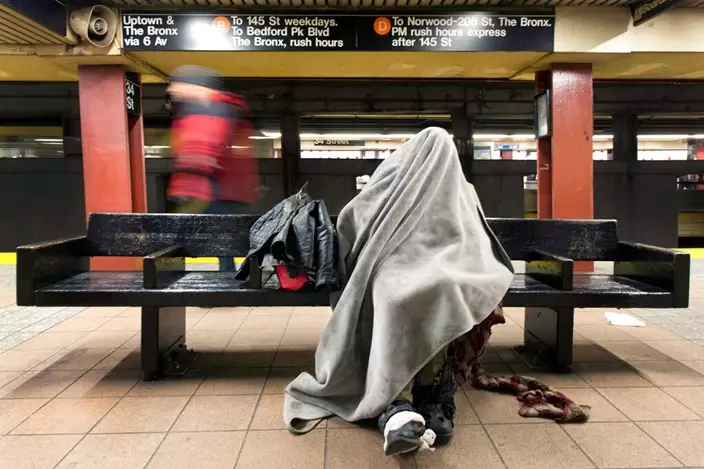 疫情令地鐵露宿者問題惡化。 AP