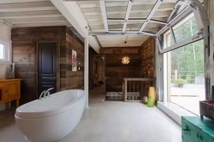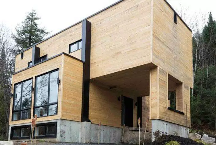 住在魁北克一個小鎮的迪布勒伊(Claudie Dubreuil),為了打造自己夢想屋突發奇想,花了約1,2000美金買來四個原本因殘舊要回收的貨櫃。本身任職建築工作的迪布勒伊按照自己的想法,將四個貨櫃堆砌成房屋的外型,並劃分出內部空間,外部加上木質色澤,看上去就完全變了身。