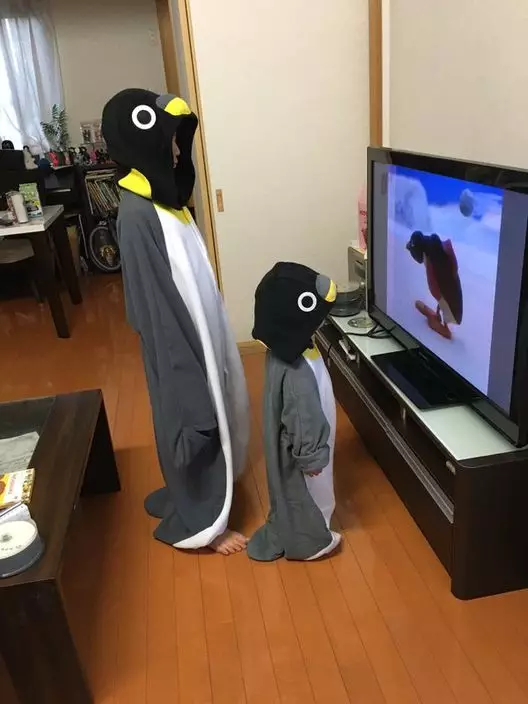 這對一對可愛的小兄弟最近迷上了卡通片「企鵝家族」,一邊看還穿上穿上企鵝裝捧場,家長覺得有趣就將他們可愛模樣拍下並PO上推特Twitter,想不到短短不2天就吸引近兩萬網友收藏及轉推。