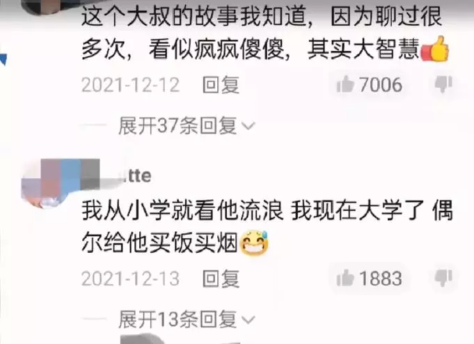 影片拍攝者將這個影片傳上網上之後,陸續有網友評論:「我上小學的時候就看到那個老人在流浪,現在上大學了,那個老人還在那裡,偶爾會給老人買飯買煙。」、「這個大叔的故事我知道,因為聊過很多次,看似瘋瘋癲癲,其實有大智慧。」、「好暖。」。