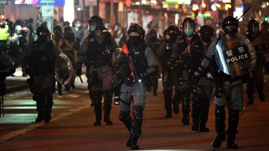當晚大批防暴警到場戒備。資料圖片