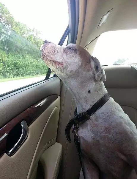 狗狗利伯(Libra)前年去世,終年15歲,臨終前主人妮可(Nicole Alderman)開車載牠兜風。利伯抬起頭靠近窗邊,閉上雙眼,似在感受微風拂面的感覺,陶醉其中。