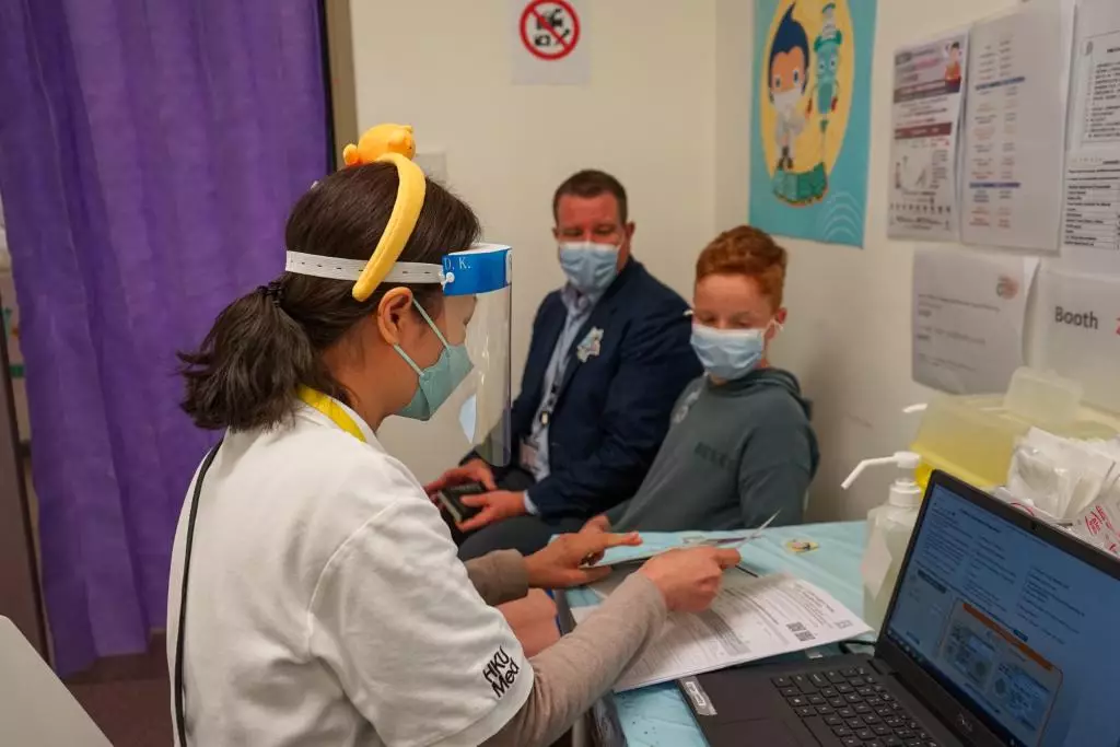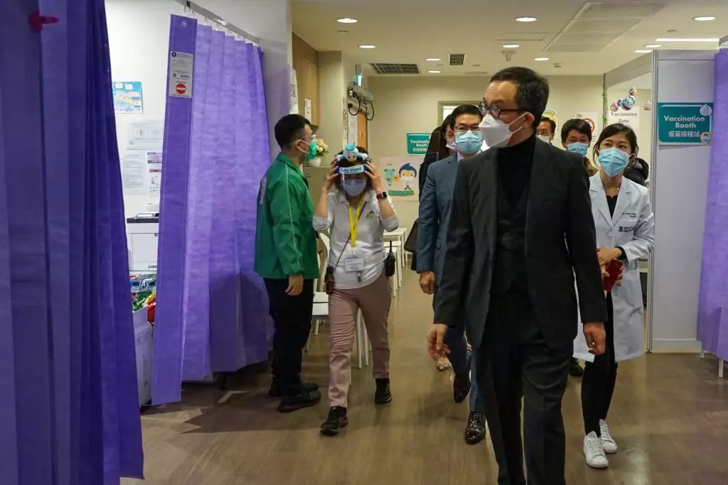 香港大學駐港怡醫院兒童社區疫苗接種中心將由今日(24日)起投入服務,專為5至11歲兒童接種復必泰疫苗。香港大學醫學院院長梁卓偉今日到場視察,其後表示下月或為今波疫情的高峰期,呼籲家長趁學童停止面授課期間,帶兒童接種疫苗,以減低兒童患上重症及死亡風險。