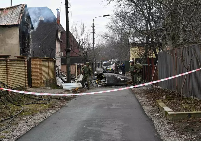 在基輔內懷疑被擊落的俄羅斯飛機殘骸。