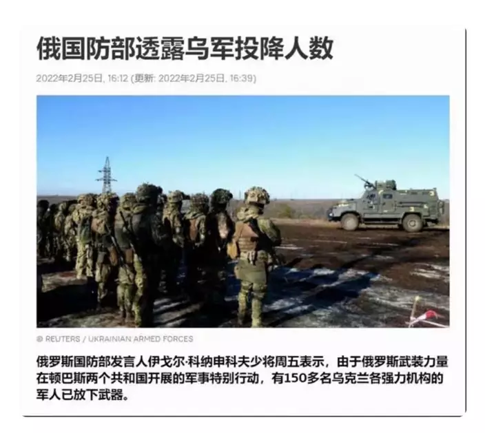 俄羅斯國防部發言人伊戈爾·科納申科夫少將週五還表示,由於俄羅斯武裝力量在頓巴斯兩個「共和國」開展的軍事特別行動,有150多名烏克蘭政府機構的軍人已放下武器。
