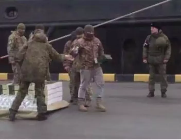 俄方公布蛇島烏軍投降後被送走的畫面。