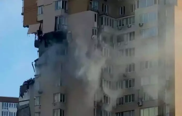 烏克蘭「山毛櫸-M1」中程防空導彈出現故障,誤中基輔一棟住宅樓的一角。