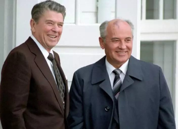 列根和戈巴卓夫。