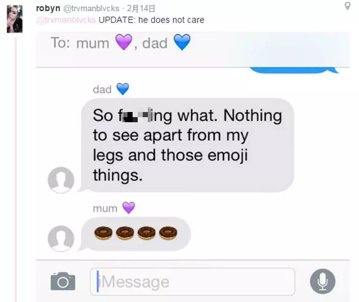 18歲的米倫(Robyn Millen)在社交網twitter上分享一張爸爸的「露鳥」照,並說「想死」。照片中雖然重要部位已經被emoji打格,但依然很露骨。