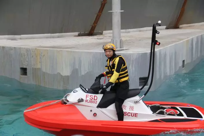 消防處亦由瑞士引入海上救援電單車,最高航速可達每小時40海里,載重多達400公斤,可以進行單人或雙人的海面拯救工作,淺水或礁石區域都可以運作。海上救援電單車可在夜間航行,亦可用直升機吊運,可連續航行70海里,將於今年第三季投入服務。