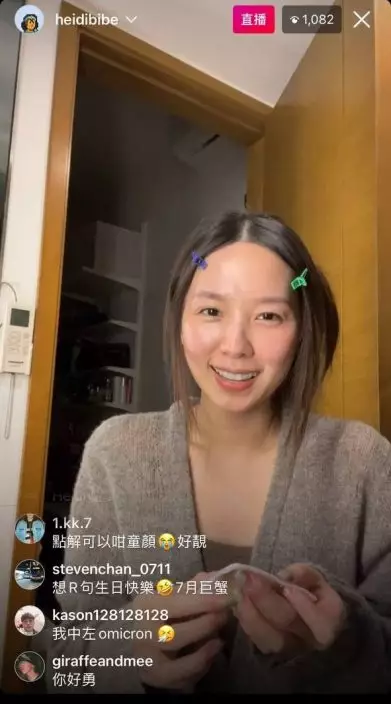 之後Heidi繼續看網友支持她的留言,接着忍不住在鏡頭前爆喊,一度喊足10分鐘,不停用紙巾掩面抹淚。待情緒穩定過來Heidi就一邊談一邊食士多啤梨,說到不續約及自己獨立都需要好大勇氣,又直言對拆夥感到壓力,因外界將茅頭直指隊中幾位不續約的成員,但其實自2018年開始各自已把放焦點放在自己的工作上。直播隨著Heidi卸完妝後完全素顏現身就結束,她對網友表示要去沖涼。