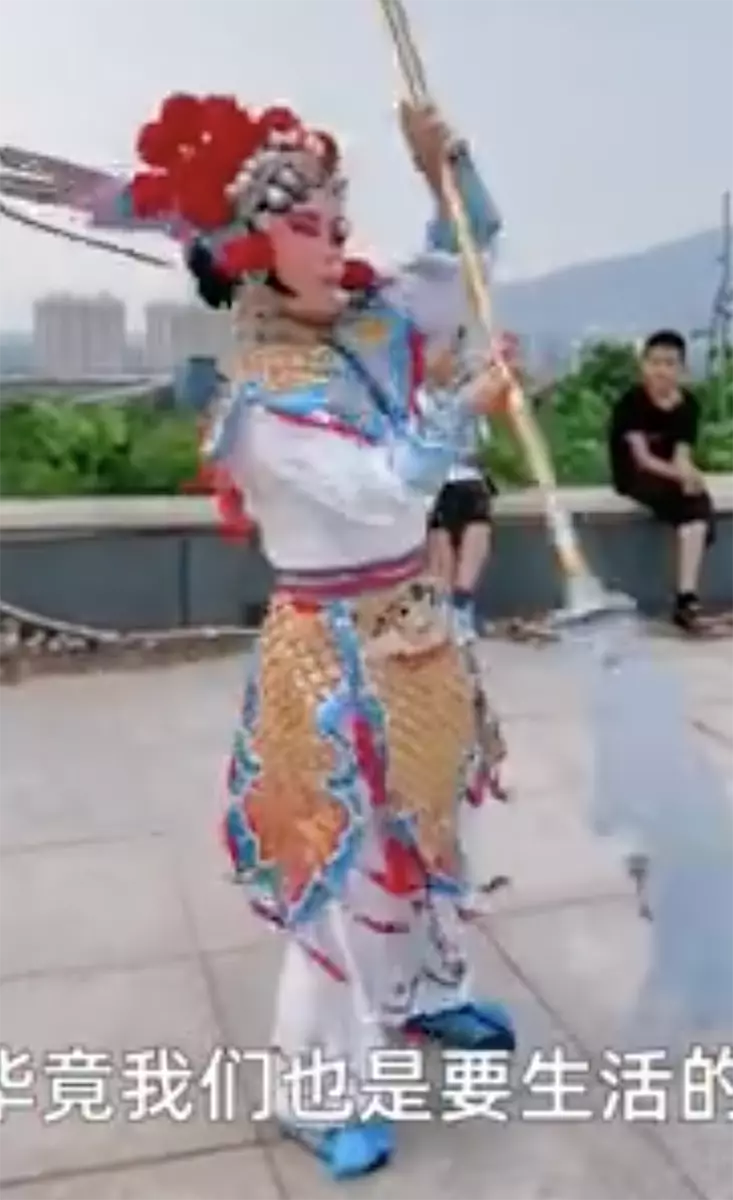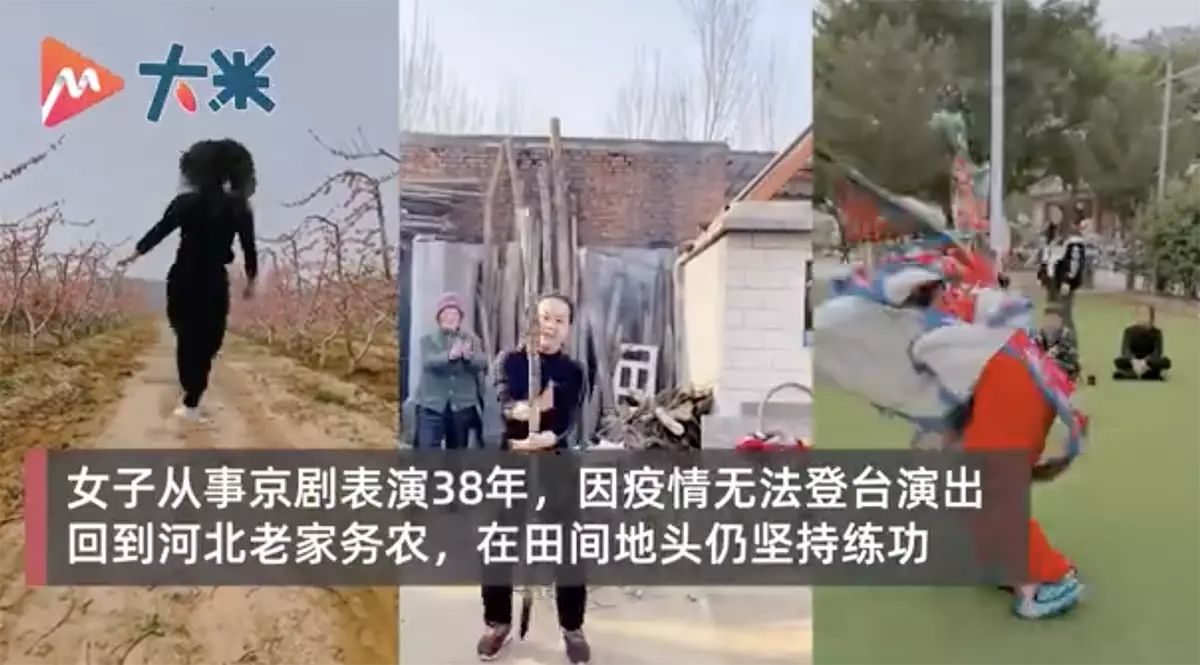 原來她的身份是一名京劇演員,最紅的鼎盛期,曾一個月演出了60場。近年來因疫情演出減少,她被迫回到老家務農,不想改行的她開始錄下表演京劇功夫的影片分享到社交平台,意外收穫了不少粉絲。
