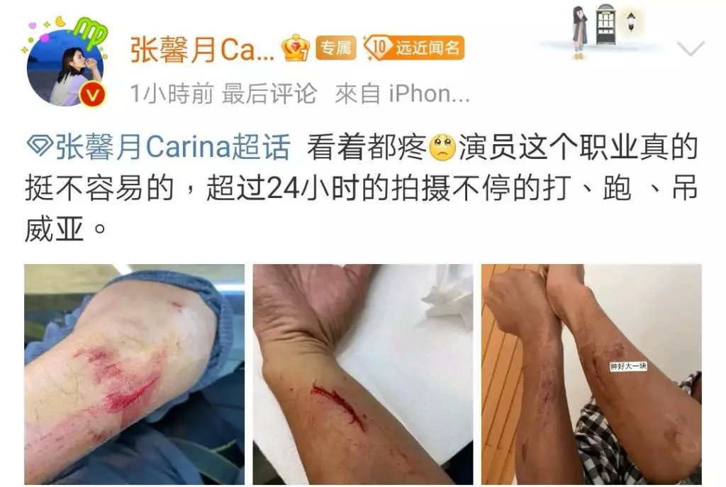 張馨月肉赤老公拍戲受傷。