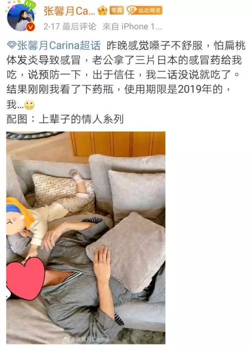 兩公婆經常喺社交網放閃,張馨月「投訴」食咗老公畀嘅過期感冒藥。