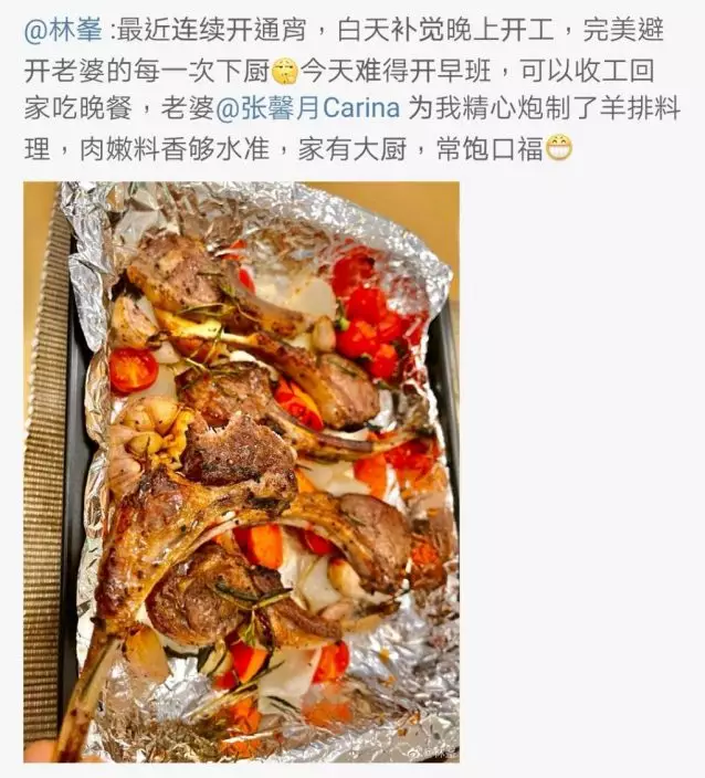 每次收工後,林峯第一時間返屋企享用老婆炮製嘅美食。