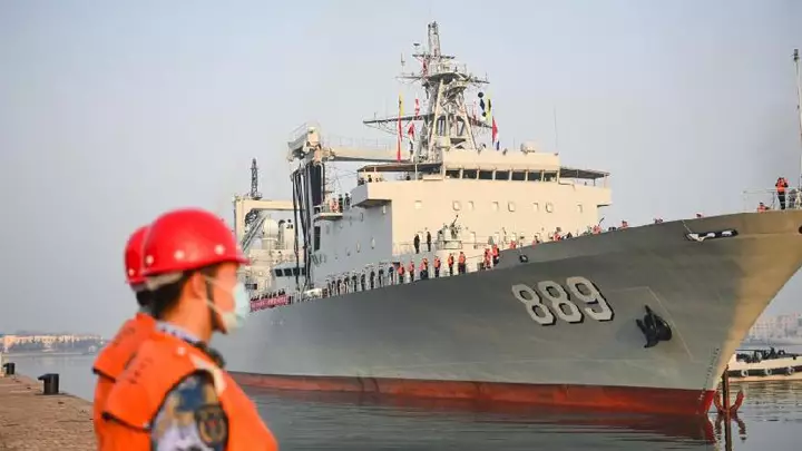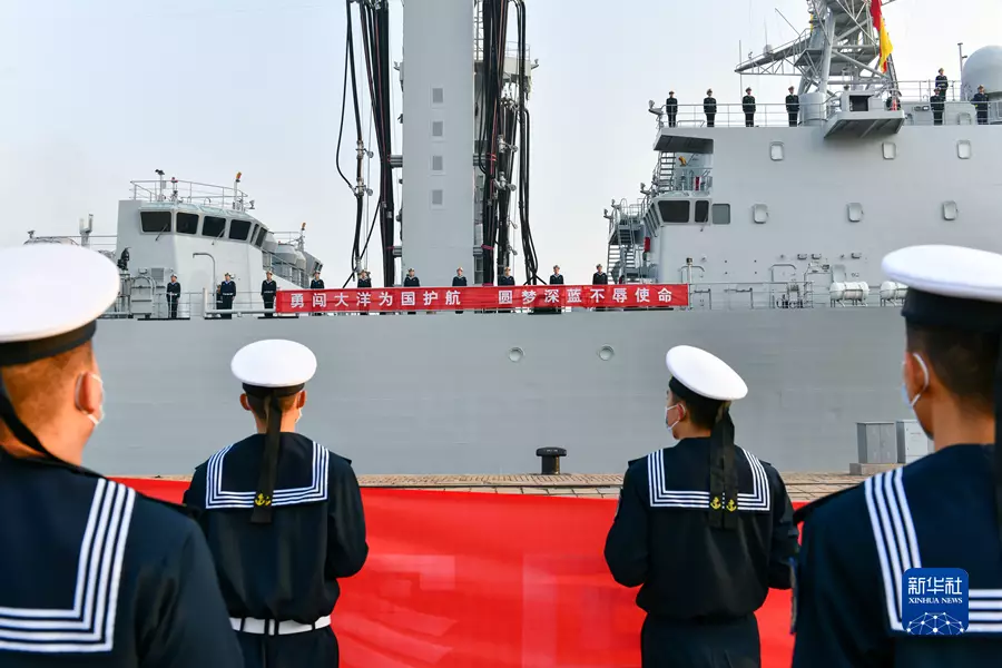 新華社報道,中國海軍第39批護航編隊由導彈驅逐艦烏魯木齊艦、導彈護衛艦煙台艦和綜合補給艦太湖艦組成,2021年9月26日從山東青島某軍港起航。