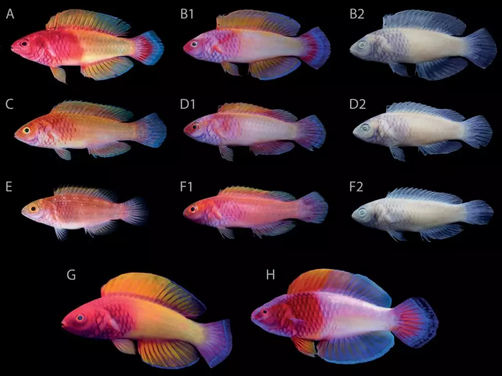 據悉「彩虹仙女瀨魚」平時主要棲息在海平面以下40至70米的深度,是典型珊瑚礁魚種,這種魚生長週期中體色非常多變,之前其實就有目擊者發現,但卻一直被誤認為是別種珊瑚礁魚的幼魚,如今確定之後才得以定名。