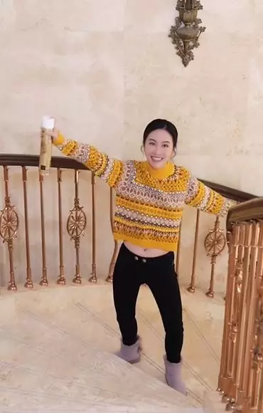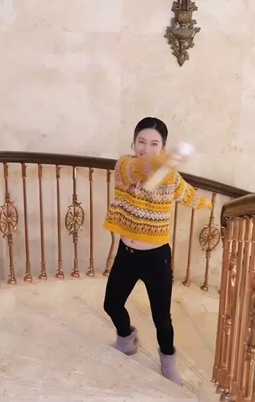 葉璇近日發布一條於南京別墅拍攝的抖音短片。這次惹來網友注意的並不是她的話語,而是她腰間誇張的贅肉。片中身穿黃色間紋毛衣、黑色緊身褲的她,在樓梯口高舉一支噴霧,假裝要製造雪景變身。可能玩得太興奮,葉璇似乎未有察覺自己露出了肚腩仔!
