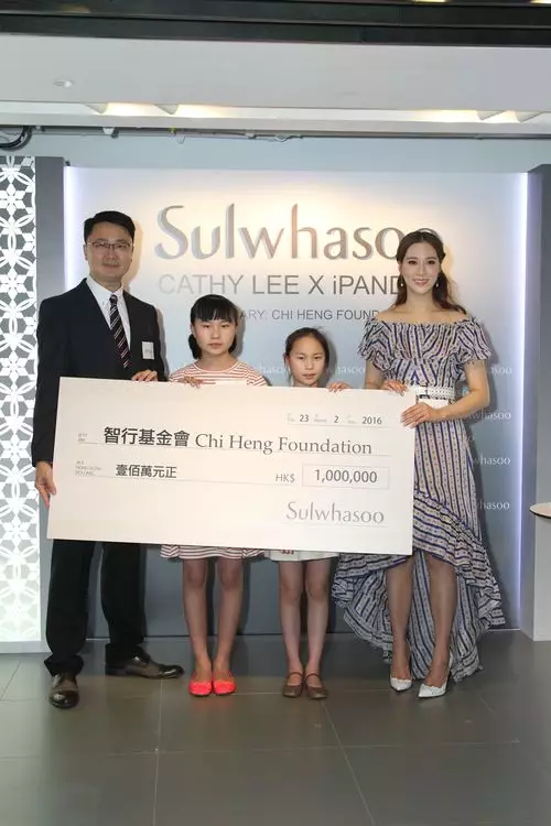 另外,子淇在活動上宣布義賣與品牌合作有份設計的熊貓吊飾環保袋,義賣收益全數撥捐智行基金用作愛滋遺孤教育用途,更以親善大使身份代表基金接收早前與品牌義賣籌得的100萬元支票,兩名受基金捐助的愛滋遺孤更與她向品牌送畫答謝。