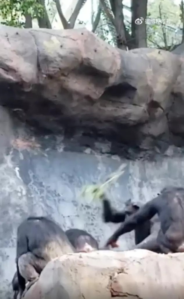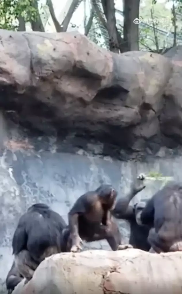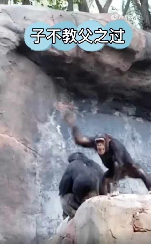 近日,一位網名為「五行屬二」網友在微博上分享了一段影片。影片中一隻身材嬌小的猩猩長臂一揮,向遊客方向掷出一塊小石頭,渾然不覺一顆猩猩頭和一截枝條從身後緩緩冒出。只見小猩猩轉身之際,枝條猛地抽下,小猩猩迅速逃離「作案」現場,不過猩猩爸完全沒有放過的意思,揮舞枝條的手臂連高大的石塊都難以擋住。附近還有兩隻吃瓜大猩猩,其中一隻在爸爸「教仔女」時伸出手,不知是想勸架還是想推波助瀾,另一隻則一個眼神都奉欠,連小猩猩撞在背上也無動於衷,不知是否因為司空見慣呢?