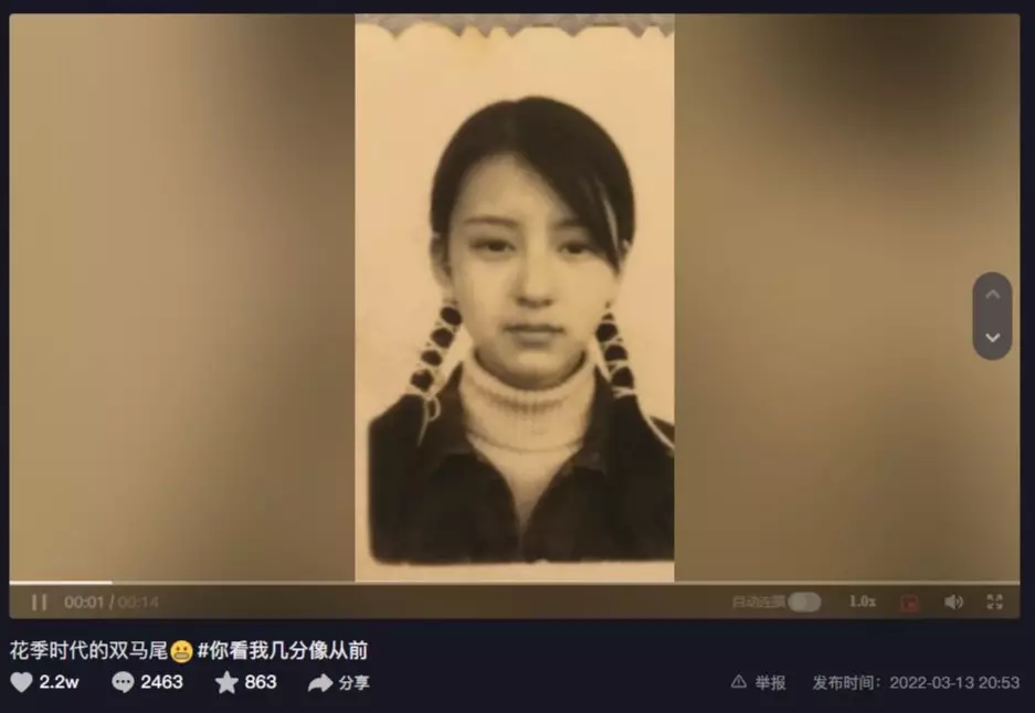 方媛於抖音分享昔日證件相。