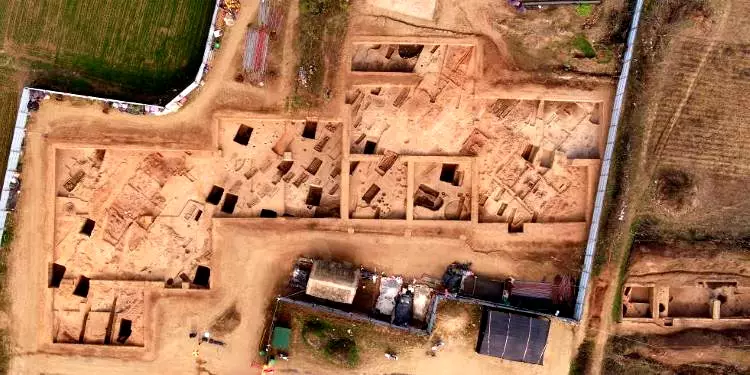 山頂台探方區航拍全景(上為北)。(中國社會科學院供圖)