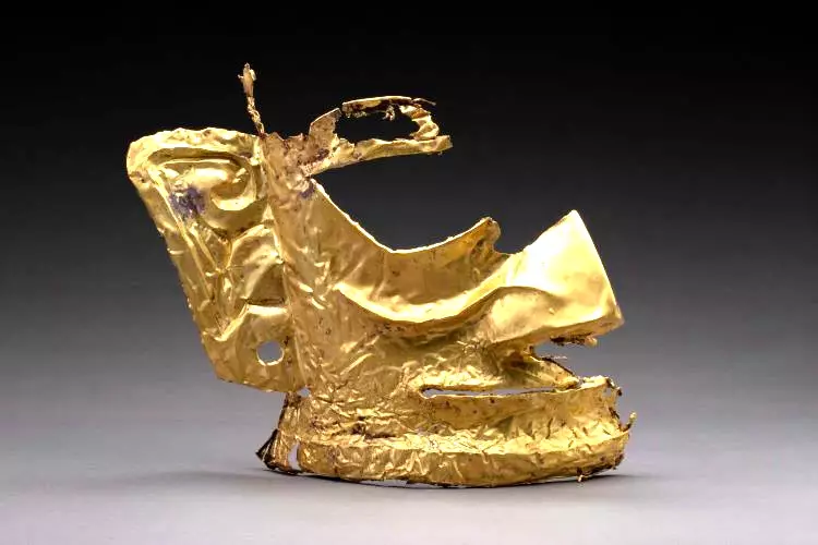 五號坑出土金面具。(中國社會科學院供圖)