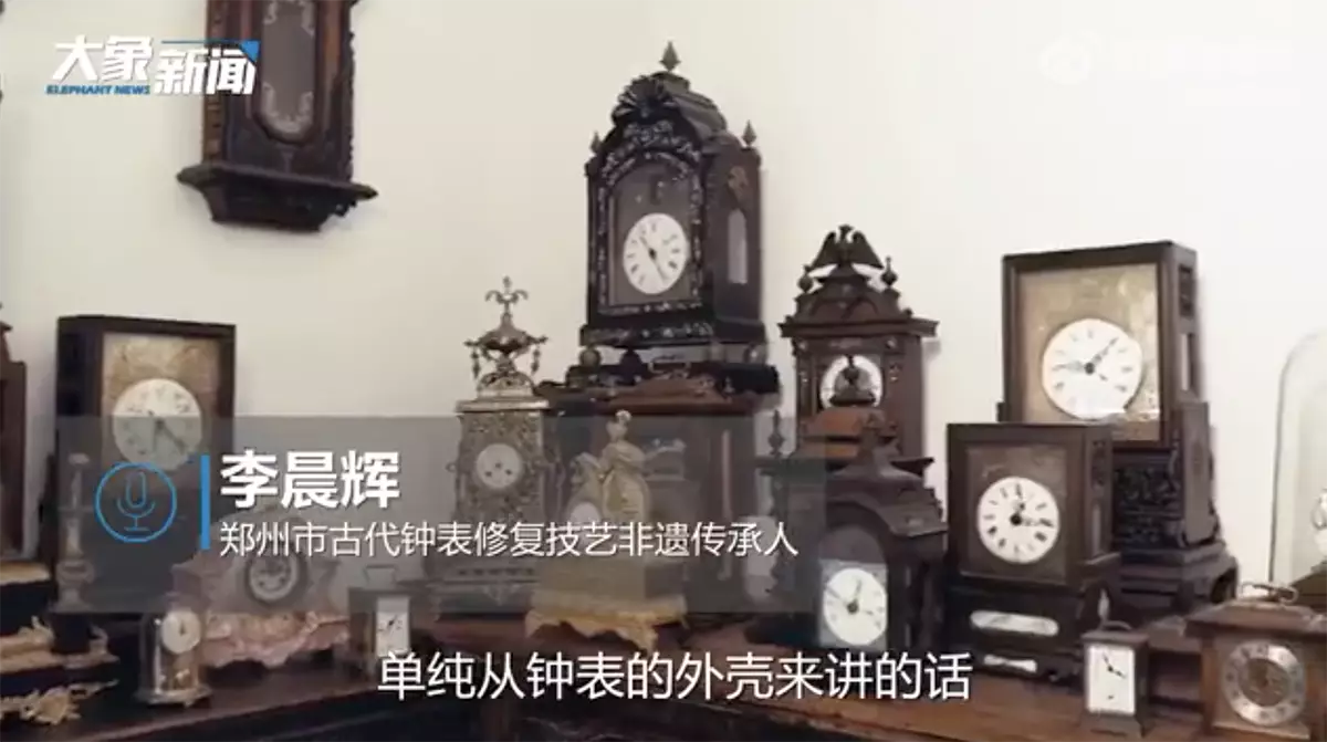民間有不少收藏家會以收集同一類物件為嗜好,當中包括玩具、文具甚至是古董等。在河南鄭州,有一名男子因兒時被故宮的上千古鐘錶館藏所吸引,長大後愛上了修復和收集古鐘錶,迄今已收集到逾700個上百年的古鐘錶,都能自開一個古鐘錶博物館了。他認為古鐘錶是一種「集大成」的東西,雖然需要花費大量金錢和時間,但因為熱愛以及文化傳承會努力做下去。