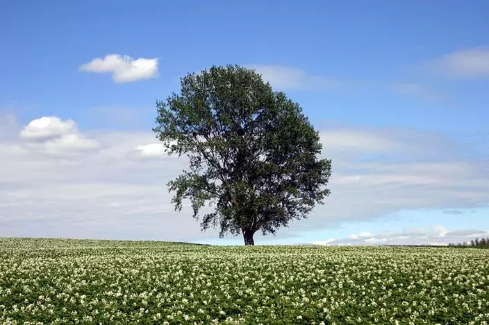 北海道美瑛「哲學之木」因以獨生木的方式在農地生長,而且傾向一邊,仿如沉思的學者而廣為人知。每年吸引無數的遊人及攝影愛好者前來欣賞它的美態。