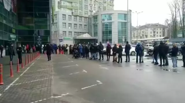2月24日,哈爾科夫,排隊等待取現金的人 。