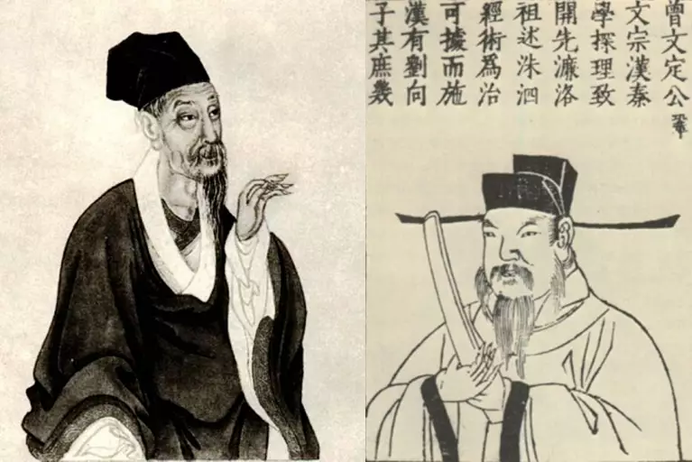 唐宋八大家之一曾鞏的側身像和半身像。