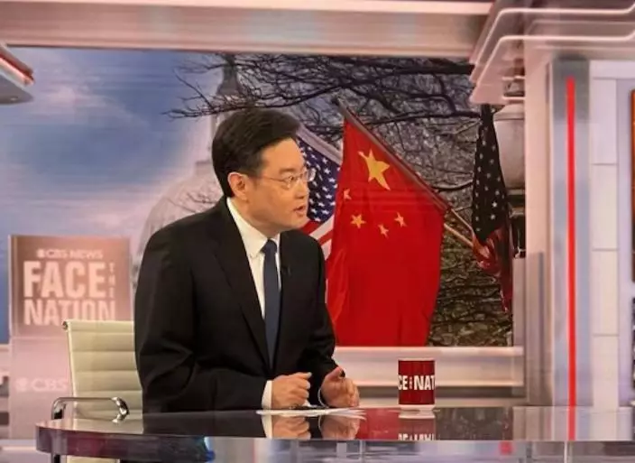 中國駐美國大使秦剛接受美國CBS主持人布倫南直播採訪。