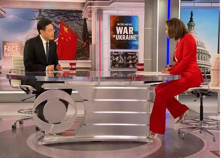 3月20日,中國駐美國大使秦剛接受美國哥倫比亞廣播公司(CBS)「面向全民」(Face the Nation)節目主持人布倫南(Margaret Brennan)直播採訪,就烏克蘭局勢等問題闡述中方立場。