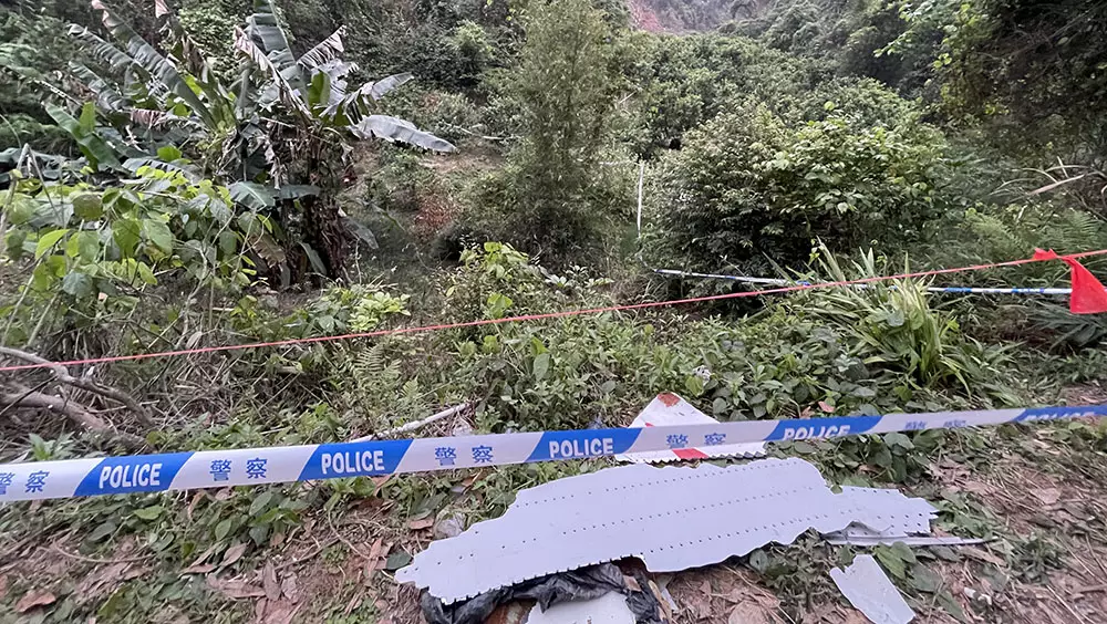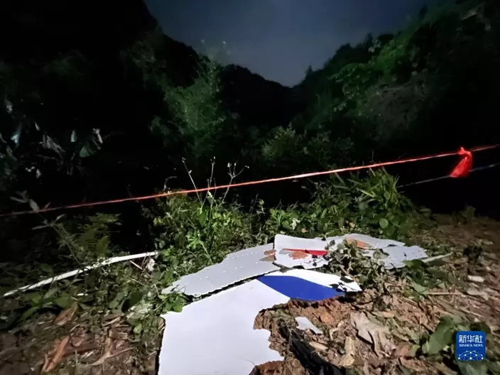 據新華社報道,22日上午藤縣降溫降雨,或影響現場救援工作。事故現場,山林中散落著飛機部分殘骸,一些樹木有燃燒過的痕跡,一些飛機的殘骸也能夠被識別。