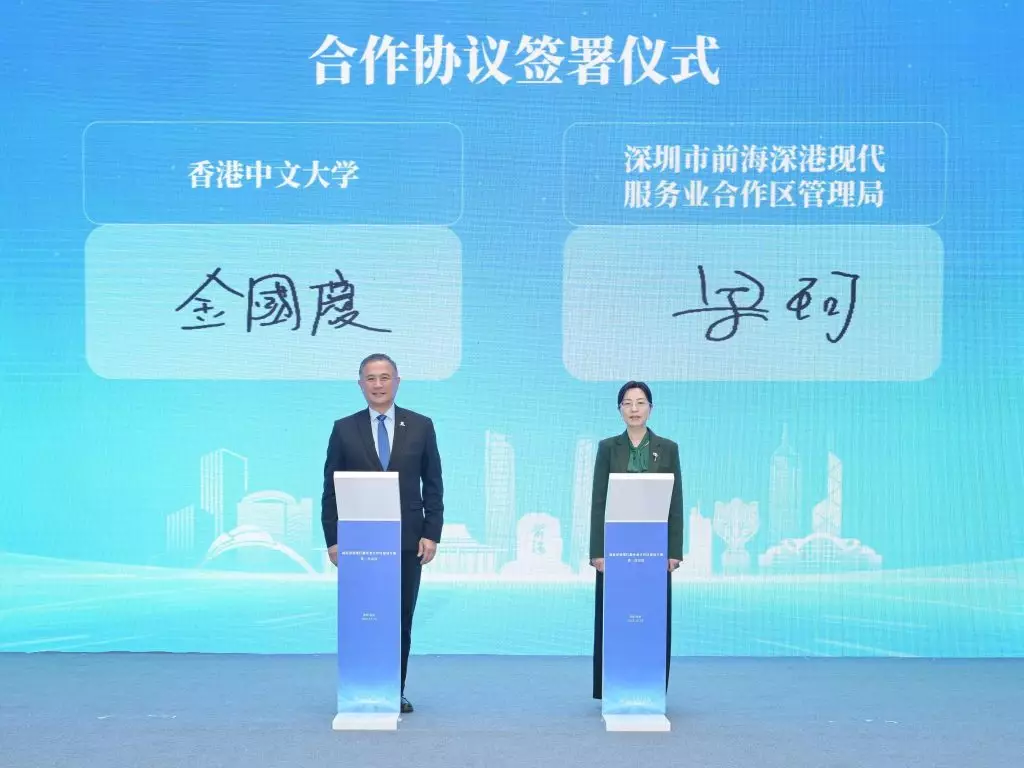 在會議上,港深雙方簽署了4份合作文件,雙方亦見證前海「深港匯」雙向總部基地及香港中小企業賦能中心兩個項目的揭牌儀式。