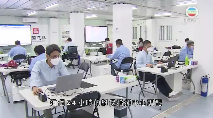指揮中心24小時輪班工作。無綫截圖