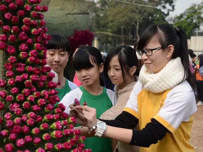 整個花壇由3萬多株不同品種的花卉植物鑲嵌而成,包括毋忘我、菊花、康乃馨、家樂花等,色彩斑斕,而且更有不同的動物造型,將會在香港花卉展覽中展出。
