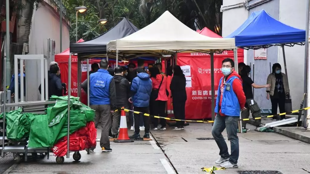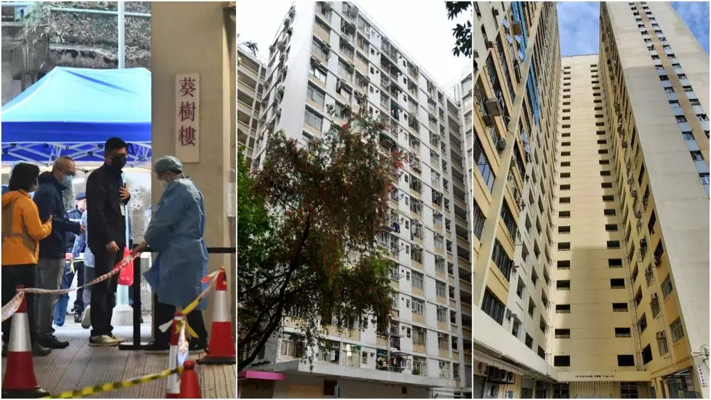 政府圍封荃灣梨木樹(二)邨葵樹樓、深水埗南昌邨昌頌樓及香港仔鴨脷洲邨利澤樓進行強制檢測行動。