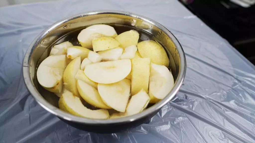 小貼士:切好的雪梨記得放到鹽水中,可避免它們氧化變黃。