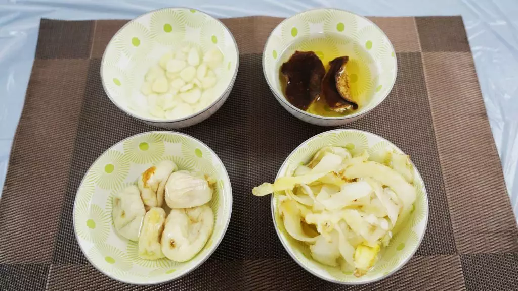 將玉竹、無花果、陳皮及南杏 洗淨浸泡。