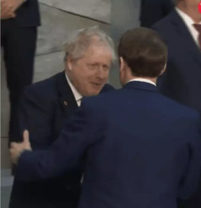 馬克龍和約翰遜極速握手致意。
