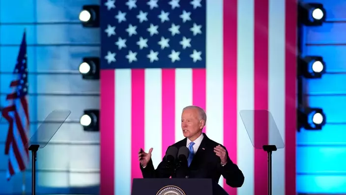 美國總統拜登在華沙皇家城堡就俄烏戰事發表講話。