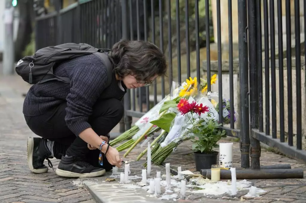 Foo Fighters下榻的波哥大酒店門外,放滿Taylor Hawkins的遺照和鮮花。
