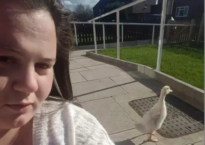 21歲來自利茲的斯坦沃思(Emma Stanworth)所飼養的五星期大卡尤加-艾爾斯伯里混種小鴨叫Clover,牠與普通寵物狗一樣跟著主人四圍去,包括到學校、酒吧、公園、游泳池,甚至齊齊上巴士。
