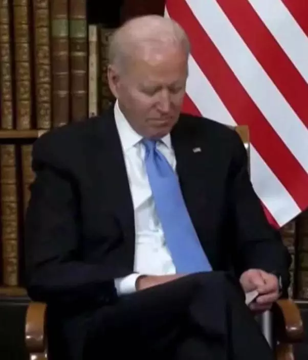 而在2021年6月的俄媒首腦峰會上,拜登會見普京時再度被抓到低頭看「貓紙」。
