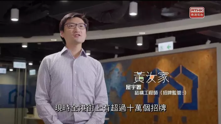 屋宇署結構程師黃汝家(招牌監管)介紹本港招牌情況