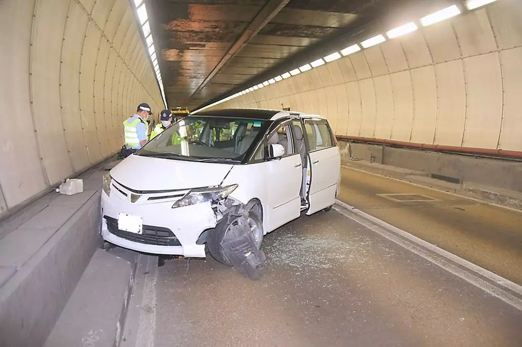 七人車獅隧撞壆58歲司機昏迷被困,送院搶救不治。
