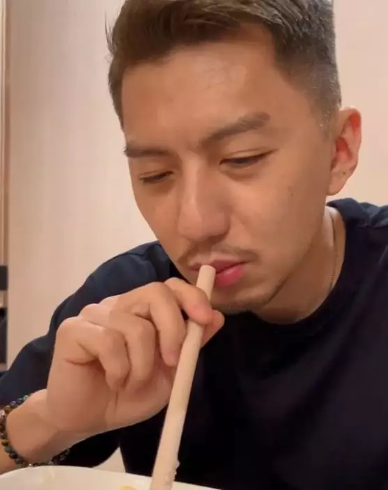 用粗飲筒吸流質食物。
