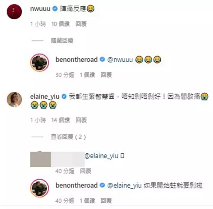 老友胡定欣形容袁偉豪嘅痛苦樣係陣痛,姚子羚表示自己都生緊智慧齒,「唔知剝唔剝好,因為間歇痛。」剝咗三隻變成智慧牙KOL嘅袁生好權威咁覆對方,「如果開始蛀就要剝啦。」唔知幫唔幫到姚子羚呢?