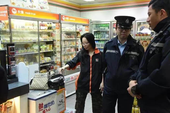 現場是油麻地廟街110號「7-11」便利店,清晨約6時,一名年約40多歲男子進入店內購物,女店員覺得男子有可疑,已加緊留意,並且向一名熟客求助,著他在店外守候,以防可疑人逃走。
